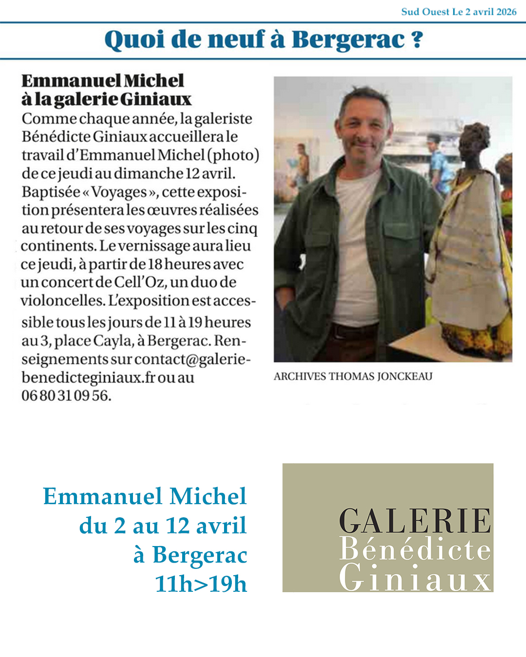 Emmanuel Michel sera présent à Bergerac le premier et le dernier jour