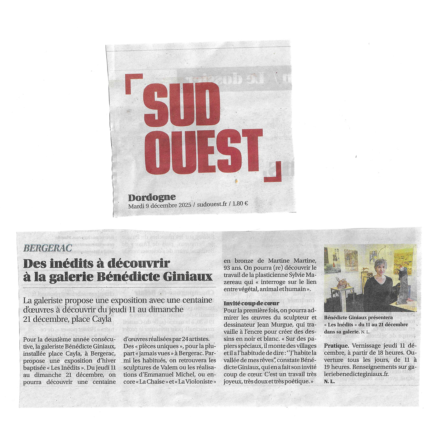Il s’agit de la seconde édition des « inédits » et je me réjouis de renouveller chaque année, à cette occasion, une bonne partie des œuvres de la galerie.