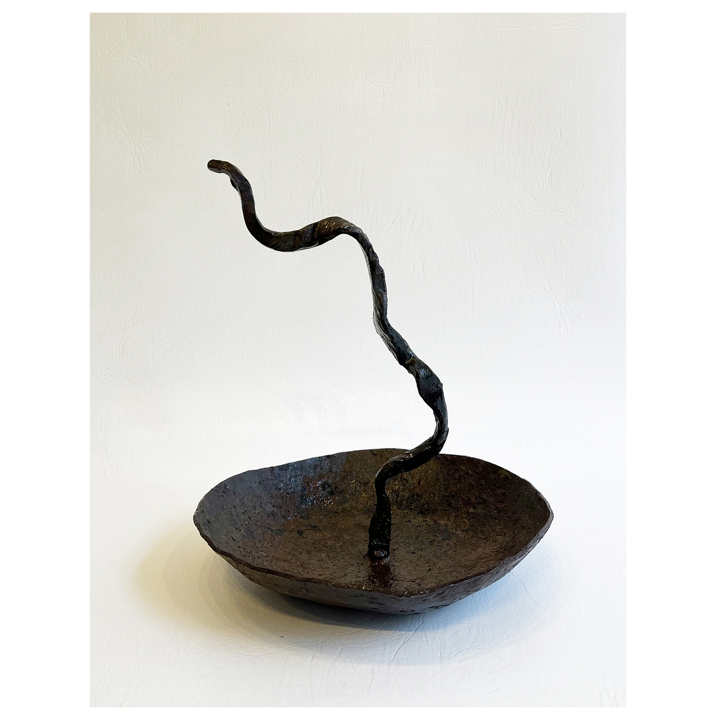 Né en 1969, Patrick Lainville travaille toutes ses sculptures, petites ou grandes, dans la lignée des forgerons. L’acier en fusion est forgé sous le marteau. Les courbes et les droites sont ajustées, les ouvertures choisies et l’équilibre rayonne. Intégrées dans la nature, ses sculptures s’accordent presque musicalement avec la végétation. Une sorte de danse semble parfois suggérée par une architecture sous-jacente et vivante. Ses grandes sculptures captent la lumière et la renvoient dans un camaïeu allant du blanc lumineux au noir très profond. Il présente son travail à Paris et dans le sud-ouest (notamment au Café Bras du Musée Soulages) depuis 1990. B.G.